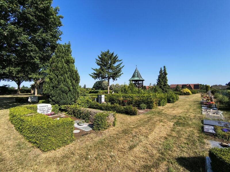 Die Anlage ist eher klein und ländlich geprägt. Ein einfaches Wegenetz führt durch die verschiedenen Grabfelder, die von Rasenflächen, Hecken und Bäumen umgeben sind. Der vorhandene Baumbestand sorgt für eine ruhige und parkähnliche Atmosphäre, die Besucherinnen und Besuchern einen stillen Ort für Trauer und Erinnerung bietet.
