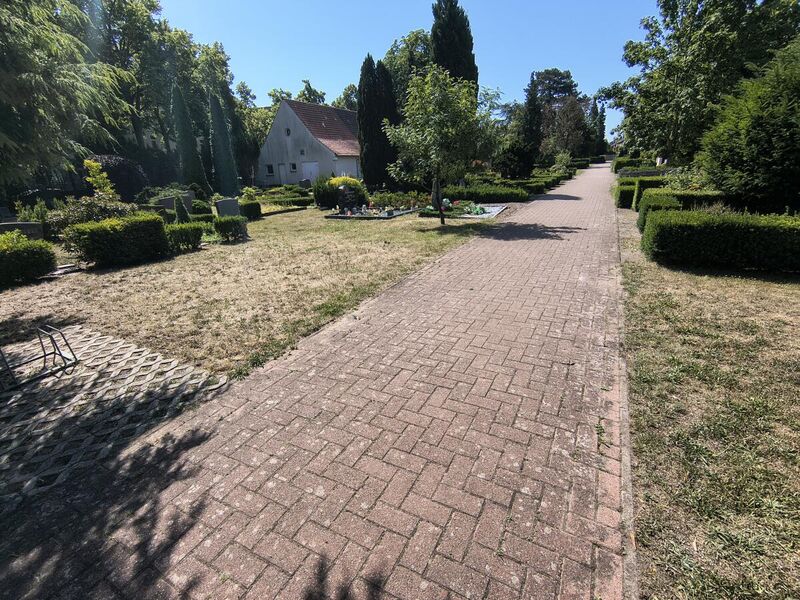 Der Friedhof besitzt einen rechteckigen Grundriss und ist durch zwei parallel verlaufende Wege in Nord-Süd-Richtung strukturiert, die die einzelnen Grabfelder erschließen. Charakteristisch sind der alte Baumbestand sowie mehrere historische Gräber aus dem 19. und frühen 20. Jahrhundert. Aufgrund seiner geschichtlichen und städtebaulichen Bedeutung steht der Friedhof als Baudenkmal unter Denkmalschutz.