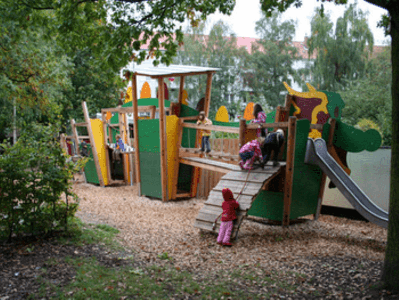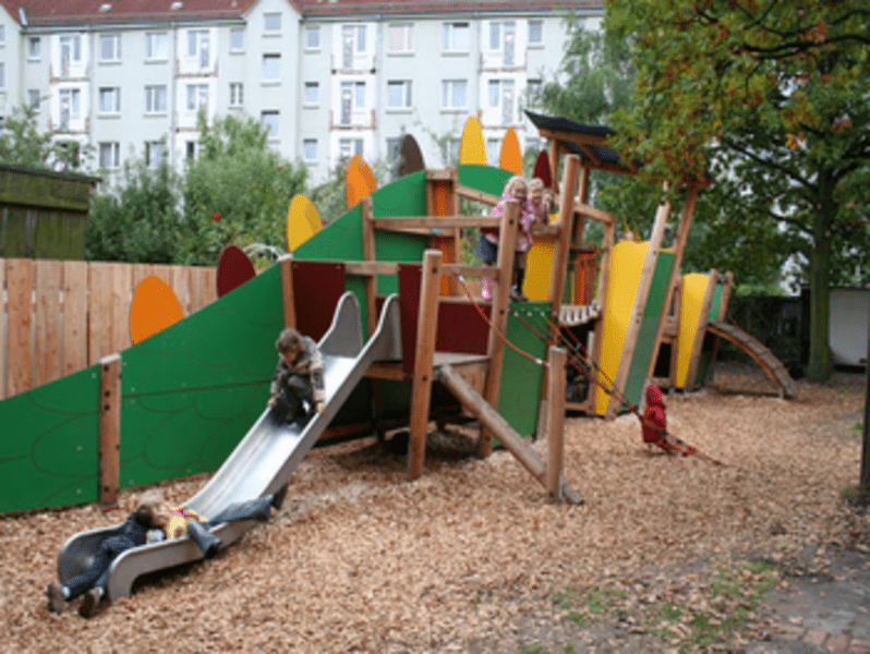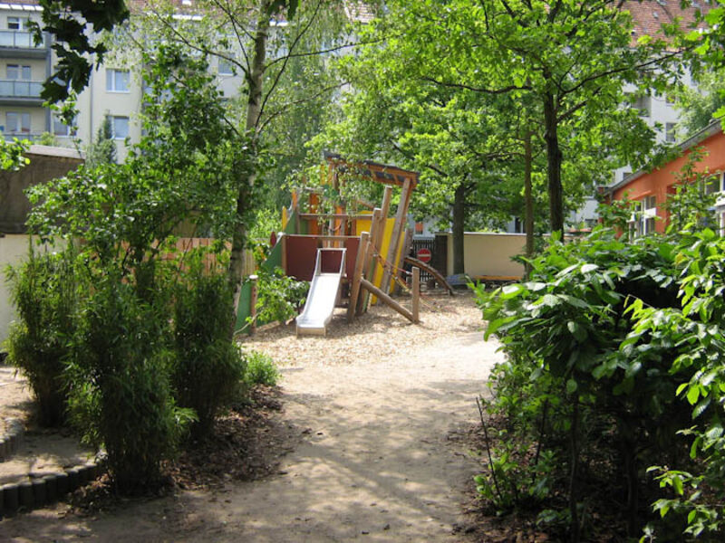 Unsere Kindertagesstätte liegt im Zentrum der Südstadt und befindet sich umschlossen von Wohnhäusern in einem Innenhof.
