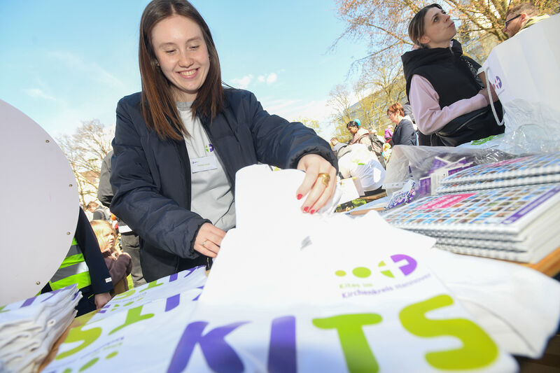 Mit mehr als 170 Kindern aus 20 Kitas war die Geschäftsstelle KITS – Kitas im Kirchenkreis Hannover bereits zum zweiten Mal am 5. April 2025 bei den Kinderläufen des Hannover Marathon dabei. Mit dem Motto „Gemeinsam läuft's“ auf ihren Laufshirts haben die kleinen Läuferinnen und Läufer der Jahrgangsstufen 2019 und 2020 und jünger gemeinsam mit ihren Gruppenbegleitungen die 800 Meter lange Strecke gemeistert.